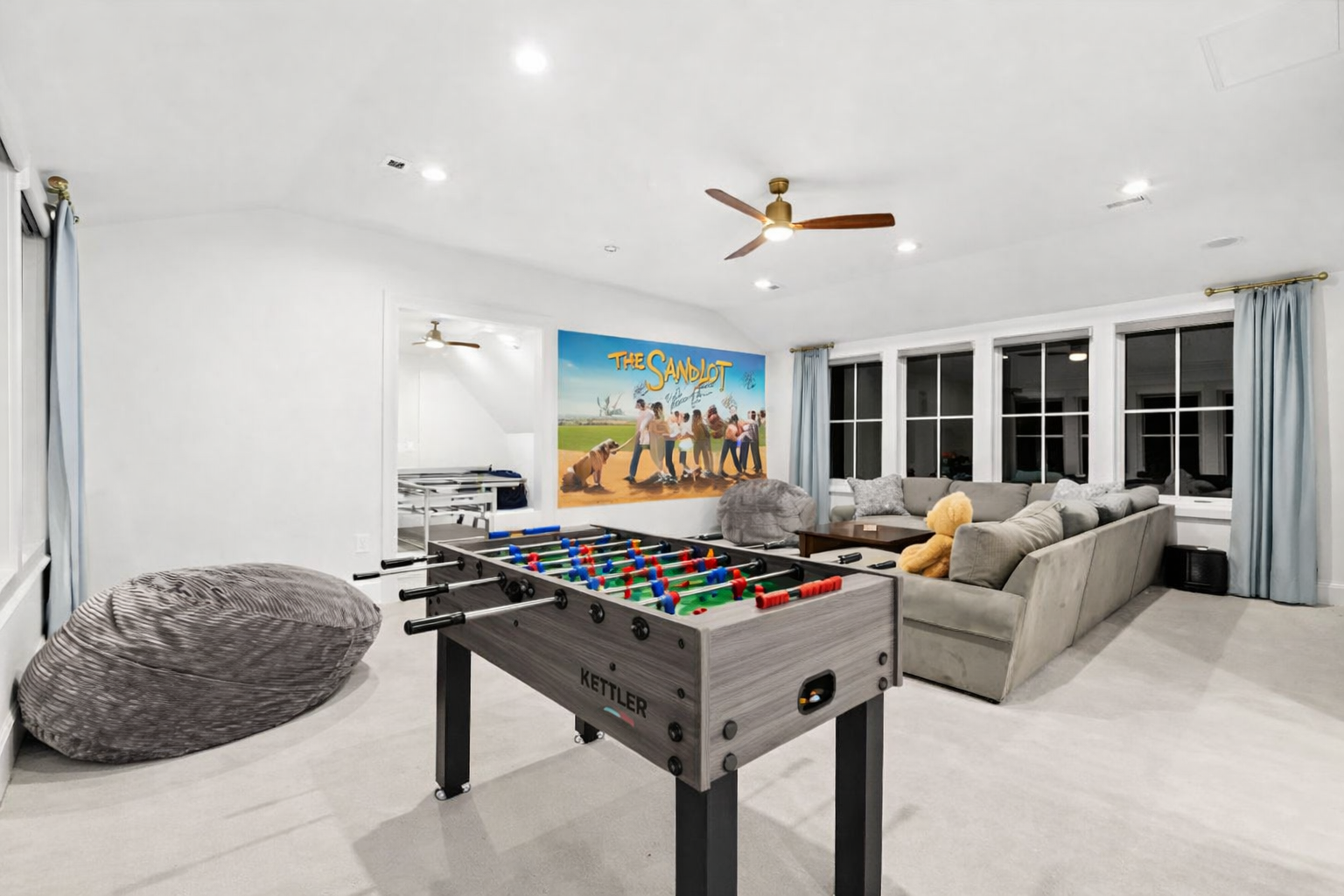 The Holmestead is a beautiful craft that results from 4 years of custom design and build-making KEY FEATURES: ☀ Sleeps 18+ including 4 Master King rooms with ensuite bathrooms and The Bunkroom w/ 8 bunks ☀ A retreat for the whole family featuring handicap accessibility throughout the entire property (aside from 2nd floor right now) allows a multigenerational family to feel at home. Designed with an eye for safety and inclusion, the first floor features comfortable bedrooms, zero-entry thresholds with no stairs, and a gently sloping path with no stairs to the firepit, waterfront, and dock. A rare find in the mountains and along the lakefront, this home allows your whole family to gather throughout the property. ☀ Breathtaking mountain and lake views outside the back screened-in porch. Equipped with built-in overhead Infratech electric heaters, Recteq built-in grill, 8-person dining table, and oversized sectional sofa. Listen to nature, take in the views, enjoy the SONOS sound system, or watch your favorite game, show, or movie in comfort! ☀ Unekoor Professional Golf Simulator! Play courses like Augusta National or just work on your game. Please bring your own golf clubs! ☀ 1000+ sq foot putting green, Kayaks, basketball, and more are available! ☀ Modern and well-equipped kitchen with coffee bar w/ GE Cafe Coffee Maker, and French Press. ☀ Kid and toddler-friendly w/ high chair, tub, kids dinnerware, 2 pack-n-plays, and more! ☀ Board games and fun for the kids! ☀ 2-car garage w/240-volt outlets for Electric Vehicle (EV) Charging ☀ Executive office perfect for remote work or homeschooling ☀ Downstairs and upstairs laundry rooms ☆☆ BEDROOMS ☆☆ This luxurious retreat comfortably accommodates 18+ guests across 6 thoughtfully designed bedrooms, offering the perfect combination of elegance, comfort, and functionality. Main Floor: The main floor is the epitome of luxury and convenience, featuring a spacious living room, gas fireplace, built-in SONOS sound system, a fully equipped chef's kitchen and scullery, and a coffee bar. It also boasts two exquisite bedrooms: ☀ Bedroom #1: A master king bedroom with an ensuite zero-entry shower with a grab bar, a soaking tub, and breathtaking views—ideal for relaxation. ☀ Bedroom #2: Another master king bedroom with a private ensuite shower, offering comfort and privacy with stunning views. This room also is designed with handicap accessibility in mind, featuring a wheelchair-accessible vanity sink and a zero-entry shower with a grab bar. Upstairs: The upper level is a hub of entertainment and relaxation, providing a variety of sleeping arrangements and fun activities: ☀ Bedroom #3 (The Carolina Inn Room): A king bedroom with a beautiful view of Dobson Knob featuring an ensuite shower and a spacious walk-in closet. ☀ Master Suite Bedroom #4: Wake up to stunning panoramic mountain views in this elegant king bedroom with a custom sliding TV, built-in SONOS speakers, and an ensuite shower. ☀ Bedroom #5 (The Bunk Room): Perfect for group accommodations, this room includes 8 twin bunk beds, making it ideal for kids or large families. ☀ Bedroom #6 (The Game Room): A cozy space that doubles as a theater room with a projector and SONOS surround sound system, featuring two twin beds for a unique and relaxing sleeping experience. Every bedroom and sleeping space in this home is designed with care to ensure guests experience unmatched comfort and luxury, complemented by stunning mountain views and modern amenities. ☆☆ GAME ROOM ☆☆ ☀ A ping-pong and foosball table for competitive fun for all. ☀ A kids' art room designed to inspire creativity and provide fun for the little ones. ☆☆ KITCHEN & LOUNGE AREAS ☆☆ The main floor of this luxurious retreat is designed for both comfort and indulgence, offering everything you need to gather, relax, and create unforgettable memories. Kitchen: Cooking enthusiasts will adore the fully equipped kitchen and adjacent chef's kitchen, which provide ample space and tools for preparing gourmet meals. Whether you're brewing your morning coffee at the dedicated coffee bar or hosting a feast, this kitchen caters to every culinary need. The sleek countertops, high-end GE CAFÉ appliances, Thermador built-in refrigerator/freezer, wine fridge, pellet ice maker, 2 dishwashers, and thoughtful layout make it both functional and stylish. Lounge Area: The spacious living room is the heart of the home, offering a cozy and inviting atmosphere for relaxation and socializing, with a gas fireplace. Large windows fill the space with natural light and showcase stunning views, creating a serene backdrop for your stay. With plush seating and tasteful decor, the lounge area is perfect for unwinding after a day of exploring or enjoying lively conversations with your group. Whether you're sipping coffee by the window, preparing meals with loved ones, or gathering in the lounge for quality time, this home’s kitchen and lounge areas are designed to make your stay as comfortable and enjoyable as possible. ☆☆ OUTDOOR SPACE ☆☆ The outdoor space is designed for both recreation and convenience, ensuring guests can make the most of their stay. Recreation: Enjoy an active day outdoors with a basketball court, lakefront putting green, kayaks, and more, perfect for friendly games and creating lasting memories with family or friends. Rent a boat from one of the local Lake James Marinas or bring your own to tie up to the dock on the property and enjoy hours of fun on the water. Finish your days by lounging in the Adirondack chairs by the lakeside wood-burning firepit. Convenience: For guests arriving in electric vehicles, the 2-car garage features convenient 240-volt outlets for electric car charging, ensuring you can recharge with ease while you relax and explore. The outdoor area at this retreat is thoughtfully designed to combine fun and functionality, offering something for every guest. ★☆ Book T