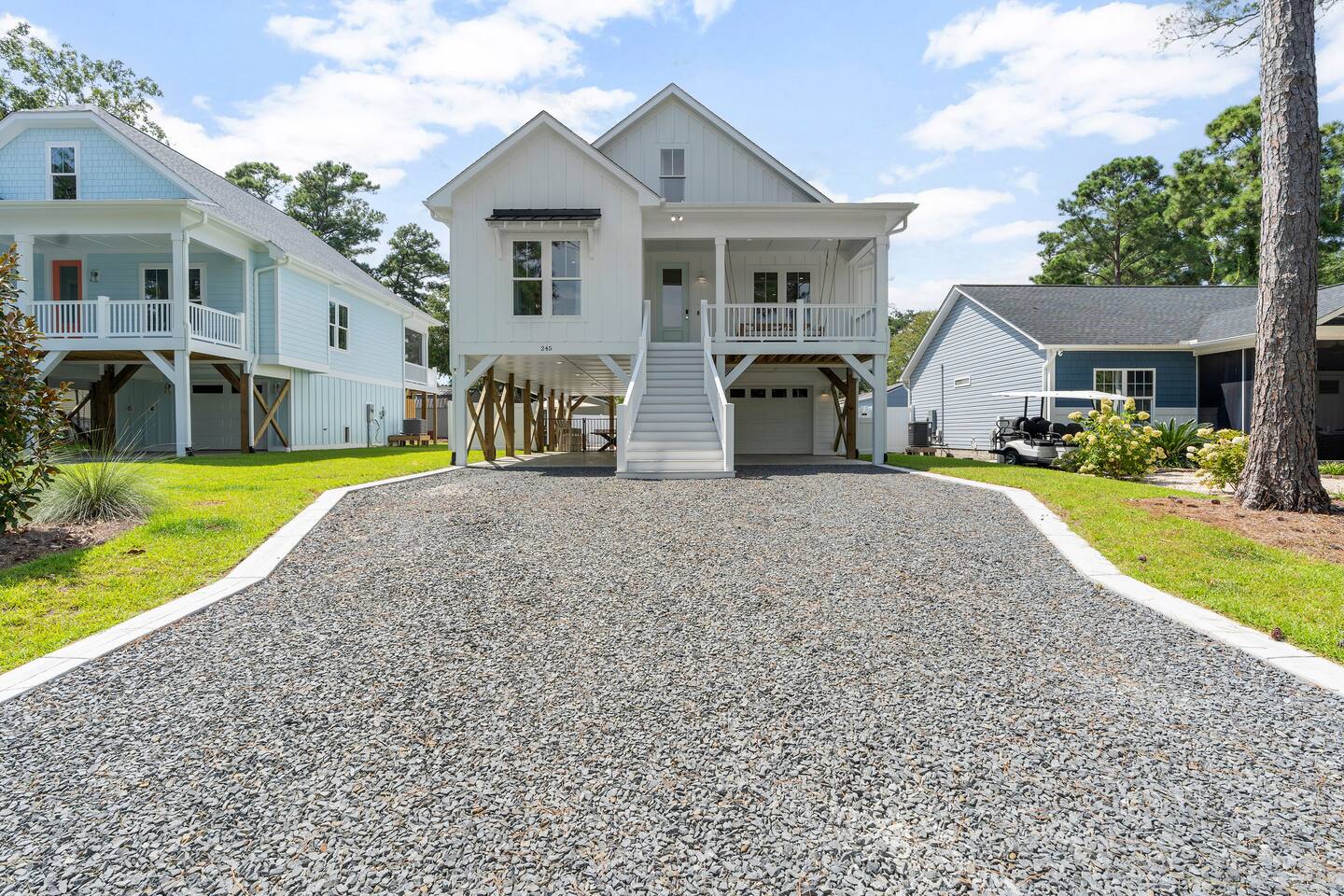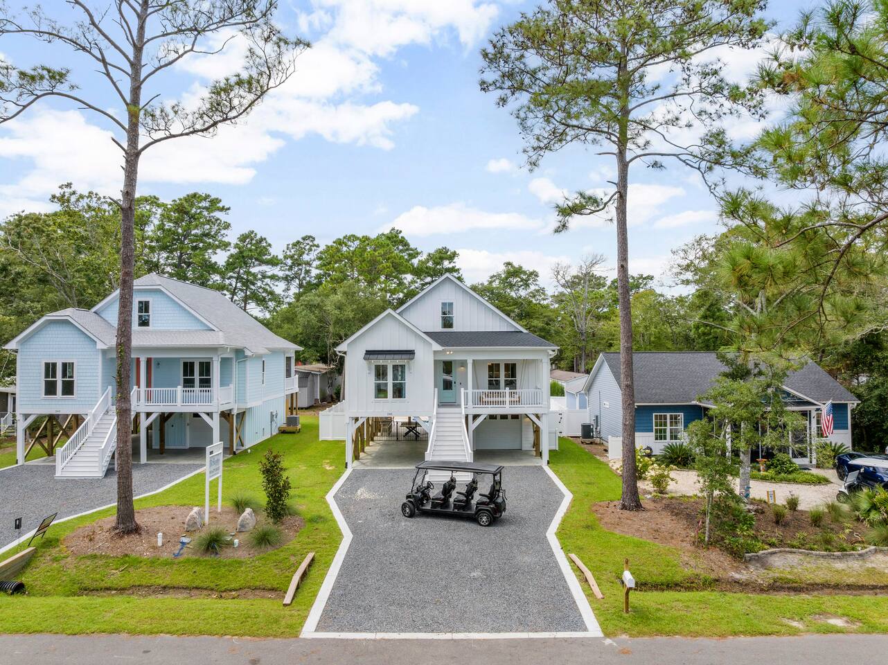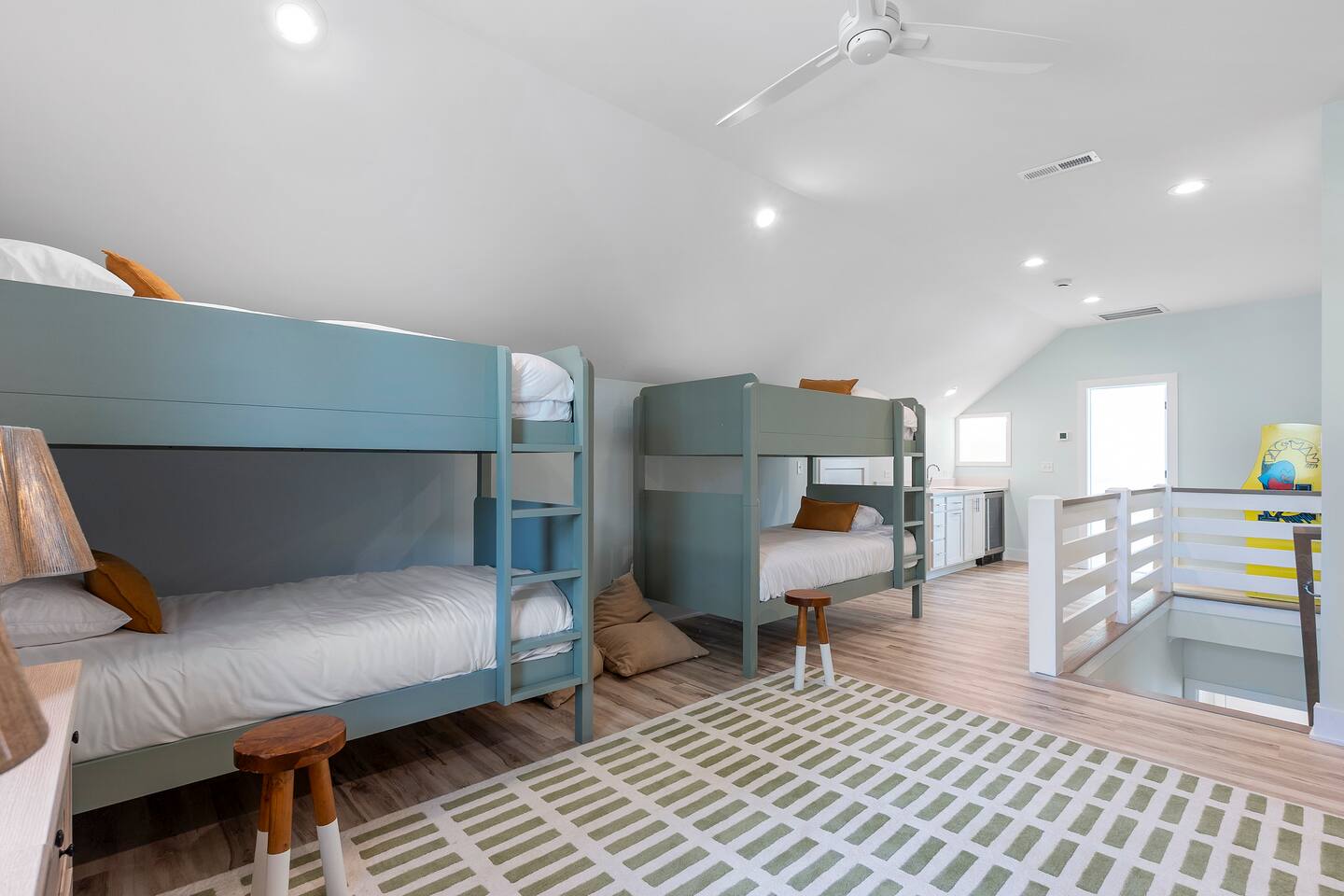 There is an elevator that can take you to the main floor where 3 bedrooms reside. The bunkroom is up 1 flight of stairs. There is parking for up to 6 cars. The keys for the golf cart are in a lockbox in the garage. If you purchase golf cart for your stay it is $75/day and you must book the entirety of your stay. Payment will be collected through the platform and a liability waiver will need to be signed prior to getting access to the lockbox code. If you lose a golf cart key, you will be charged $200 to pay for the cost of the replacement.